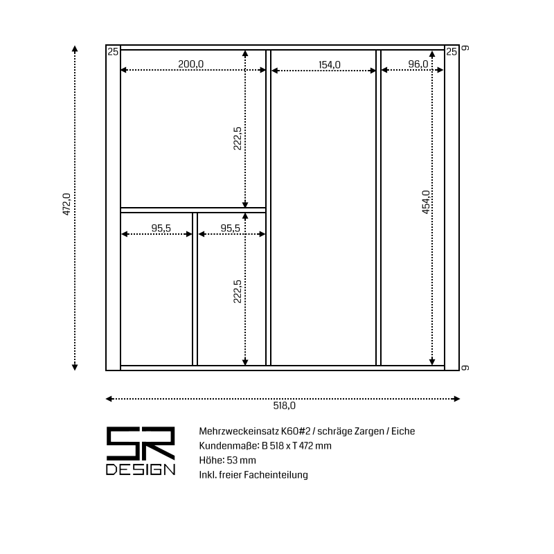 Produktinformationen "Mehrzweckeinsatz K60 für schräge Zargen. Einzelanfertigung. (#2) Eiche."