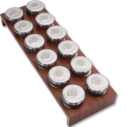 Gewürzdosenhalter für den Einbau in einem Besteck- oder Mehrzweckeinsatz. Für 6 oder 12 Gewürzdosen erhältlich.
